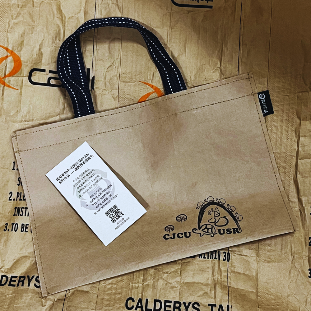 長榮大學長期推動「大學社會責任實踐計畫(USR)」以學術能量回饋社會,推動地方產業與環境的永續發展。在這樣的理念下,我們有幸與長榮USR團隊合作,共同製作兼具環保與實用的手提袋。這些手提袋以再生材料為核心概念,從設計、裁製到製作過程,皆秉持「減少浪費、延續價值」的精神。透過這次合作,讓學生與社區能夠實際看見廢棄材料如何被轉化為具設計感與故事性的日常用品,也讓永續不再只是口號,而成為能被觸摸、被使用、被感受的實踐。我們相信,當學校的教育能與社會需求接軌,每一個作品都能成為知識與行動的交會點,讓地方、環境與未來,一起走向更好的循環。