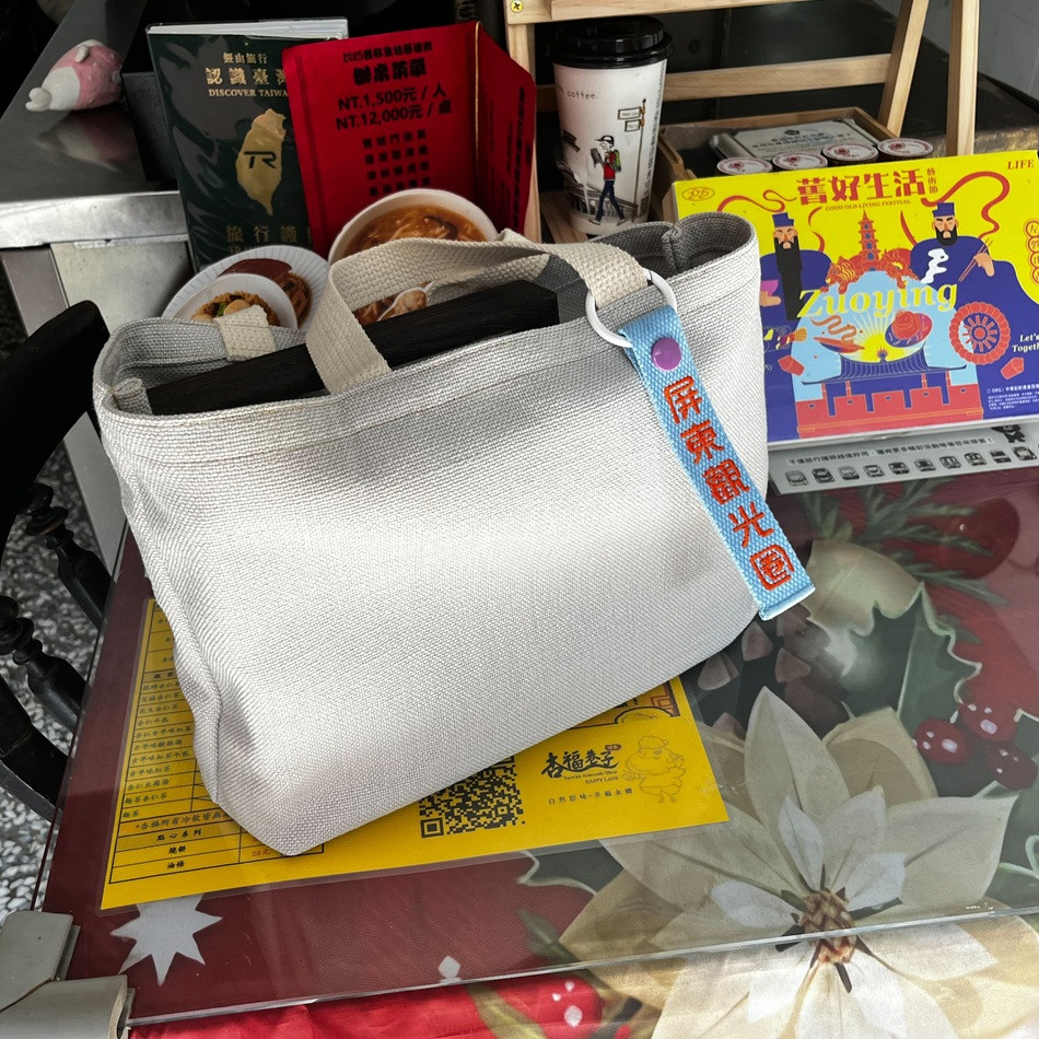 今年,屏東觀光圈再次與我們合作製作手提袋,這次與上次不同,選用了遊艇廢布作為材料,為環保與美感注入新意。